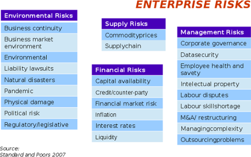 Standard and Poors have summarised the categories of risk to a business enterprise to be generally as given in the following diagram.